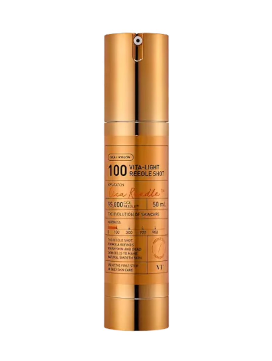 De VT Cosmetics Vita-Light Reedle Shot 100 is jouw dagelijkse brightening booster in een krachtig serumformaat! Deze jelly-achtige treatment combineert een hoge concentratie vitamine C met CICA REEDLE™ microdeeltjes om je huidtextuur te verbeteren en je glow een flinke boost te geven. Perfect voor een doffe huid, pigmentvlekjes of als je gewoon een flinke dosis vitaminepower zoekt.